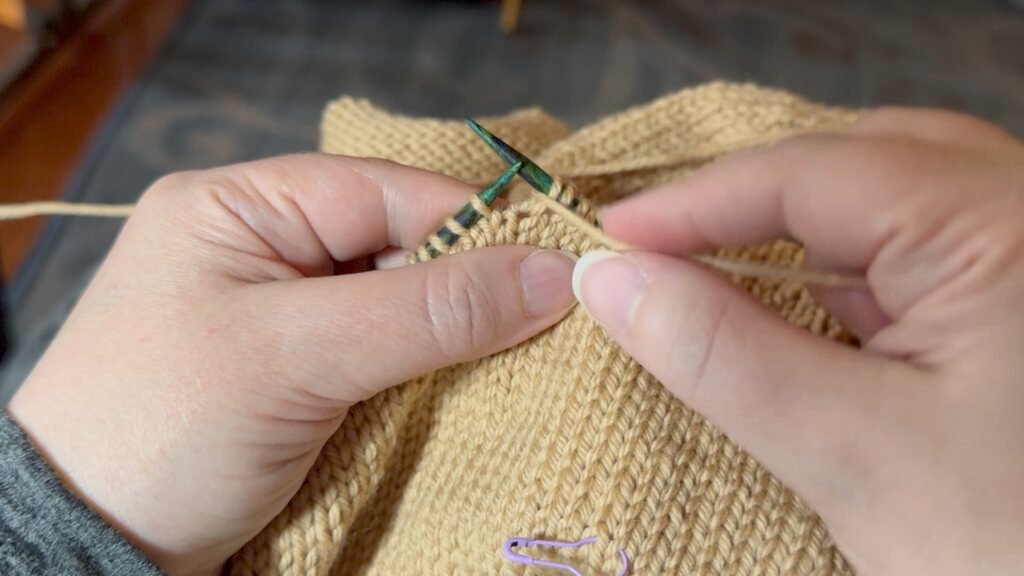 - You can now knit (or purl, depending on which side you’re on) in the other direction until you reach the point at which your pattern says to wrap and turn again,.